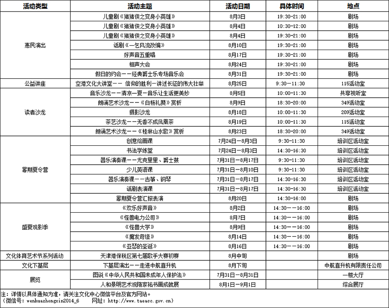 【抢先播报】空港文化中心——2018年8月活动安排