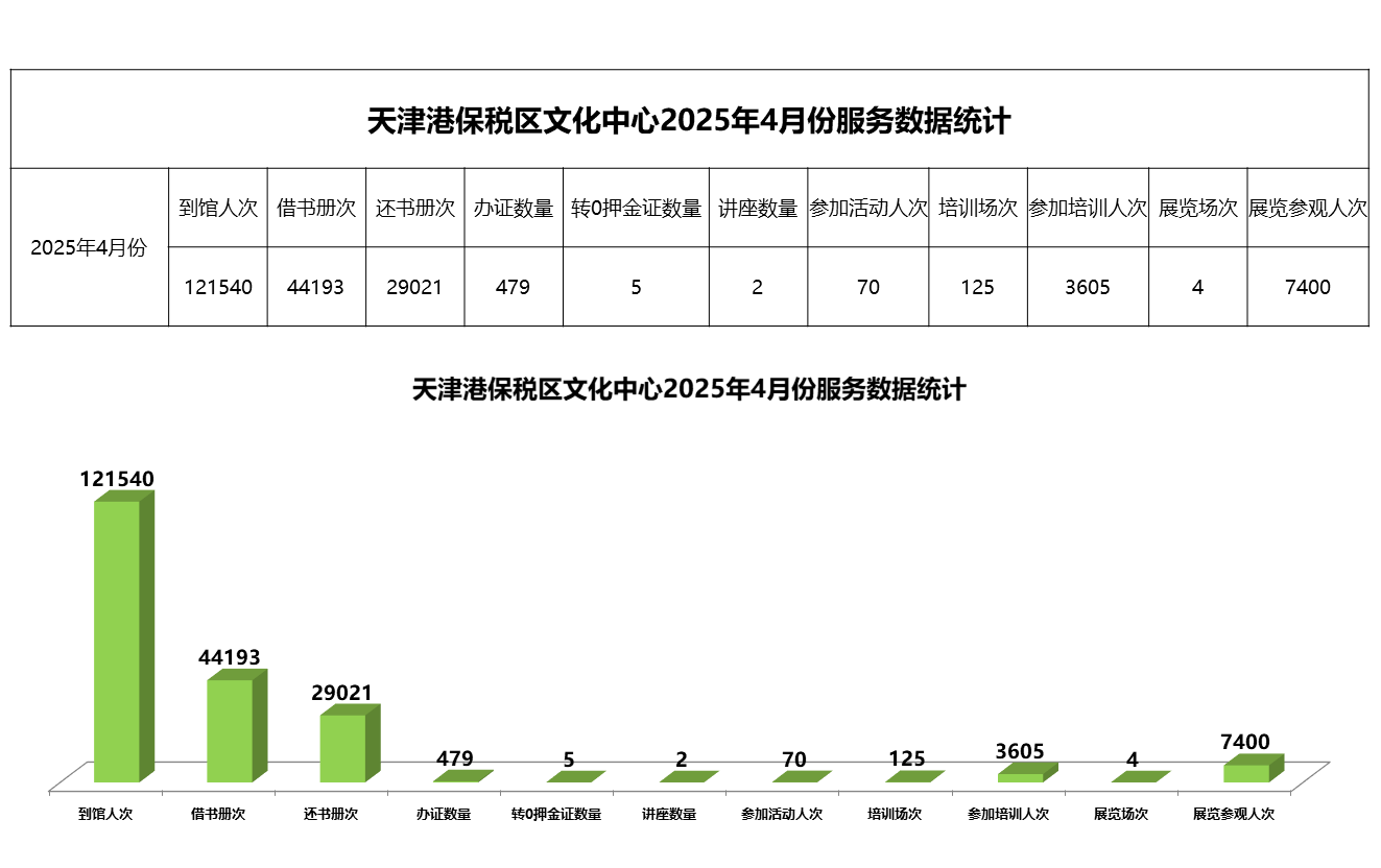 天津港保税区文化中心 2025年4月份服务数据统计