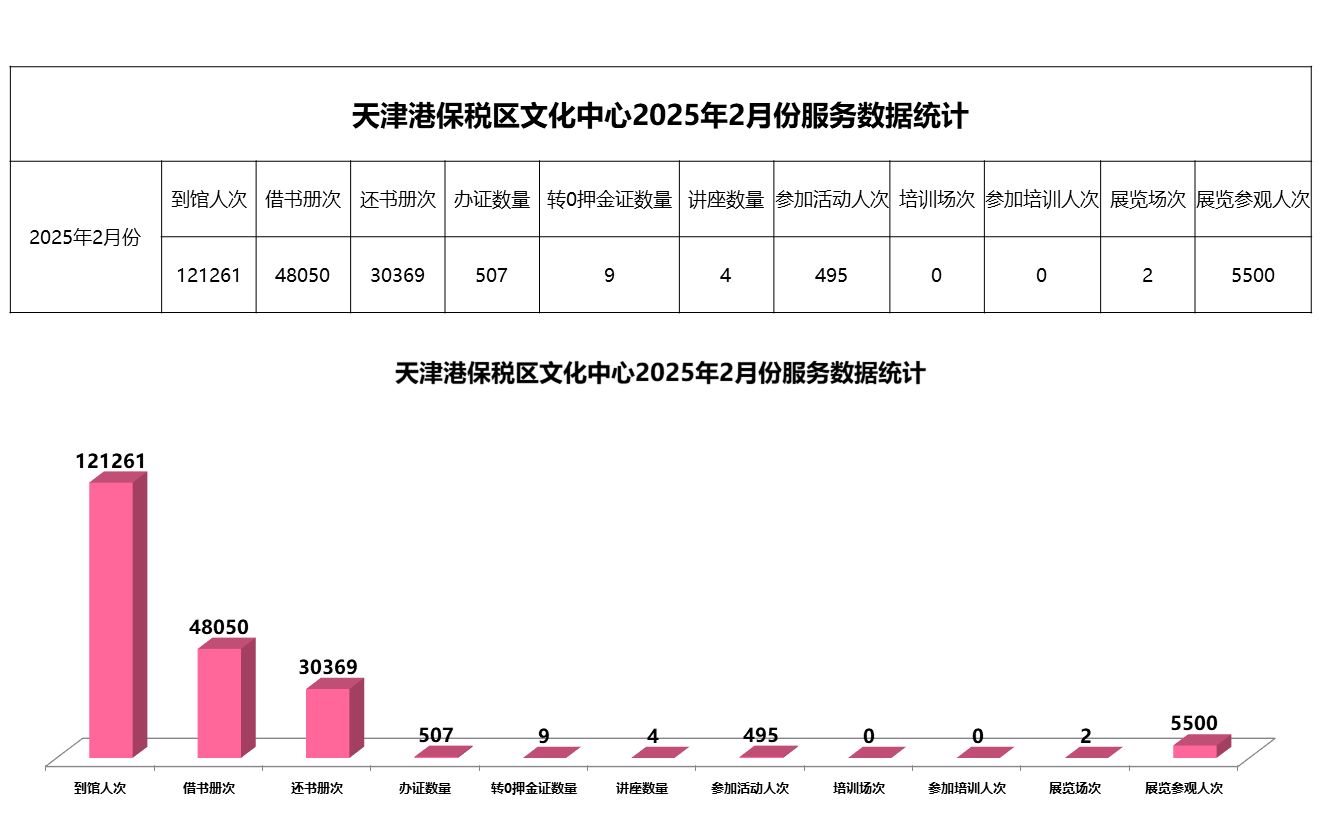 天津港保税区文化中心 2025年2月份服务数据统计