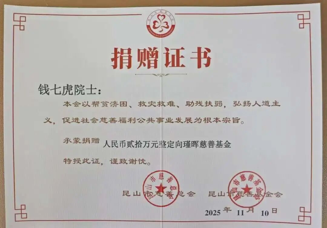 2019年,钱七虎获得国家最高科学技术奖,他将800万元奖金全部捐到“瑾晖”慈善基金。